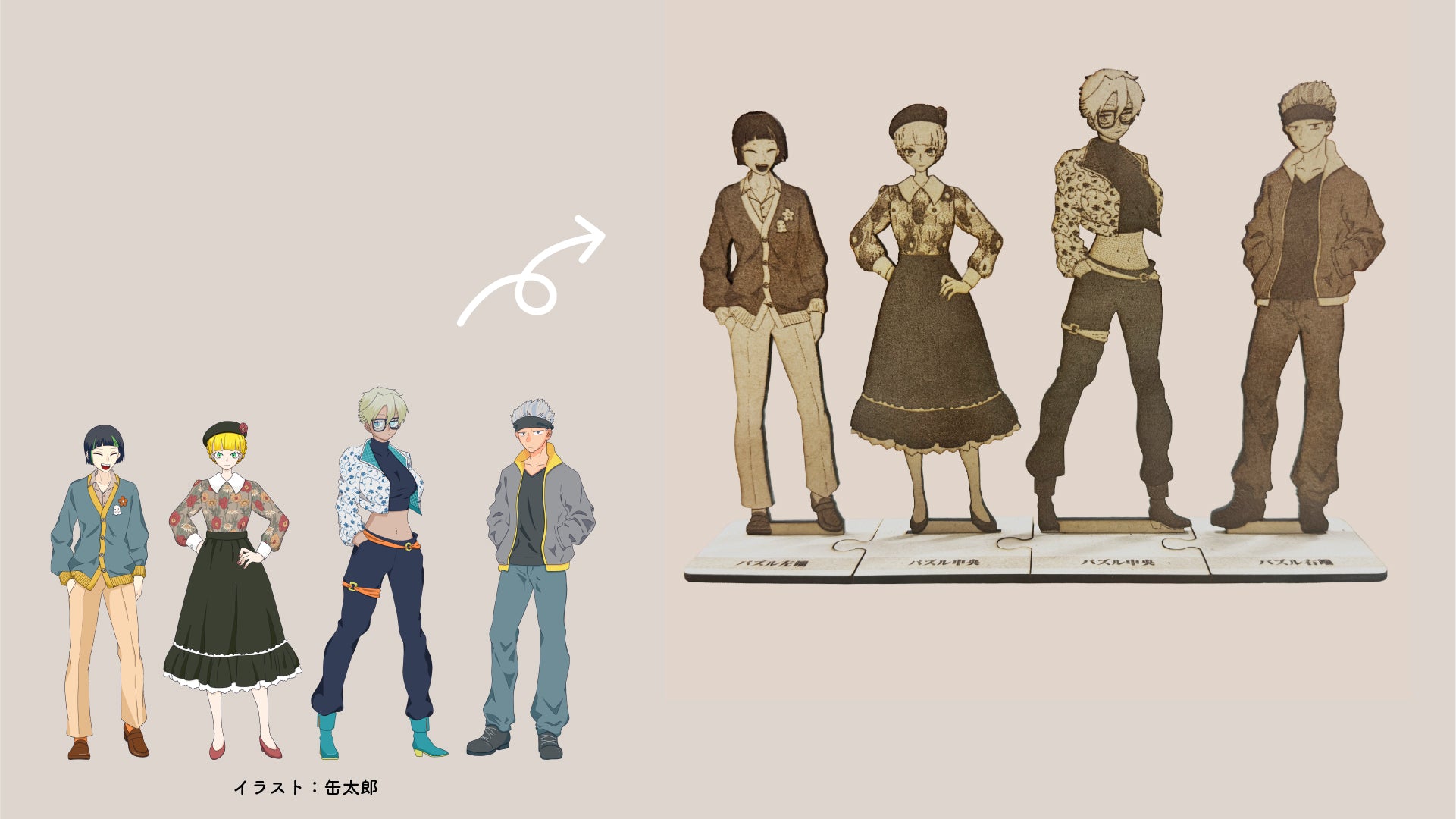 キボリスタは、あなたのイラストを木材にレーザー彫刻して制作する、オリジナルのキャラクタースタンドです。