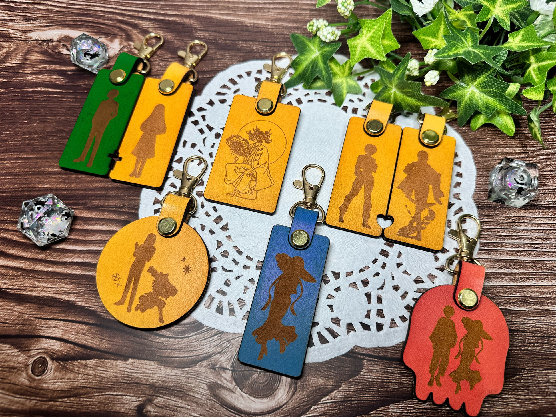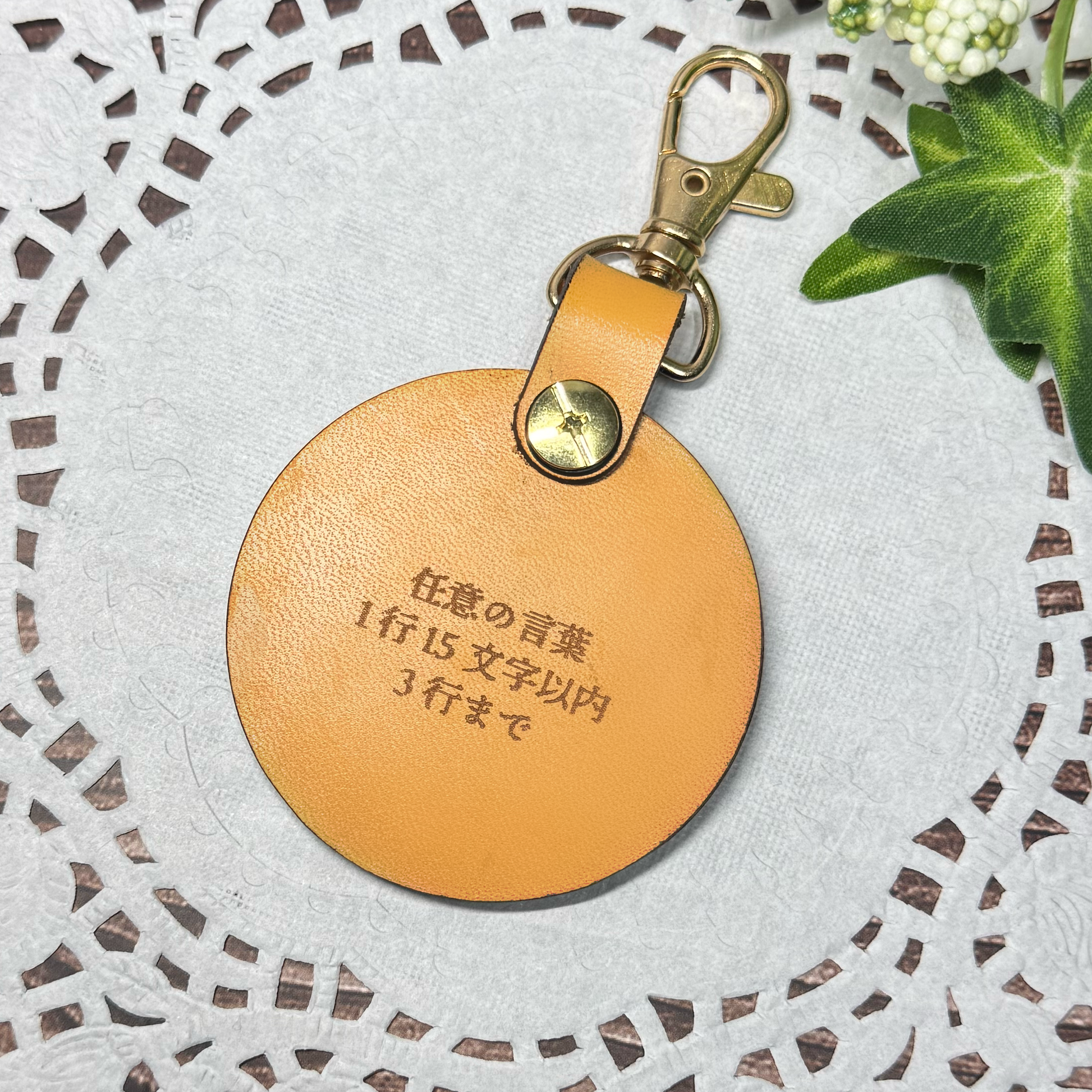 あなたのキャラクターのシルエットや線画を革にレーザー彫刻して制作するチャームです。